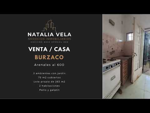 VENTA Casa de 3 ambientes con jardín en Burzaco sobre lote propio de 263m2 (8,48 m. x 31.03 m.).<br> <br> <div style="line-height: 1.2;"><span style="font-size: 14px;">· Hall de entrada</span></div><div style="line-height: 1.2;">· Living Comedor<br></div><div style="line-height: 1.2;">· 2 Dormitorios<br></div><div style="line-height: 1.2;">· Cocina<br></div><div style="line-height: 1.2;">· Baño con ducha y calefón eléctrico<br></div><div style="line-height: 1.2;">· Altillo<br></div><div style="line-height: 1.2;">· Garage techado para 2 autos<br></div><div style="line-height: 1.2;">· Patio privado trasero con Galpón como espacio de guardado y Lavadero<br></div><div style="line-height: 1.2;">· 75 m2 cubiertos<br></div><div style="line-height: 1.2;">· arboles frutales.<br></div><div style="line-height: 1.2;"><br></div><div style="line-height: 1.2;">Ubicada en la calle Arenales entre las calles Ituzaingó y Prilidiano Pueyrredón en Burzaco.<br></div><div style="line-height: 1.2;">A metros del club San Martin y a pocas cuadras de Av. H. Irigoyen<br></div><div style="line-height: 1.2;"><br></div><div style="line-height: 1.2;"><span style="font-size: 14px;">Propiedad accesible para personas con movilidad reducida.</span></div><br>