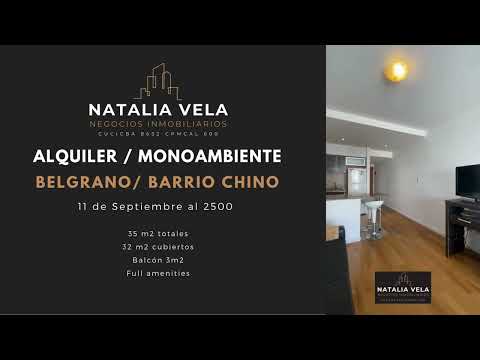 <p><span style="font-weight: bold;">ALQUILER</span> Excelente monoambiente con balcón en BELGRANO, Zona Barrio CHINO</p><p>Se encuentra sobre la calle 11 de Septiembre, entre Av. Monroe y F.D. Roosevelt. A 2 cuadras del nuevo Polo gastronómico. A pocos metros de Av. Libertador y Av. Cabildo.</p><p>Cocina completa integrada, baño completo con bañera, Super luminoso con balcón al contrafrente.</p><p>Edificio moderno con Full amenities y espacios comunes:</p><p>Pileta - Solárium - SUM - Espacio de Co Working - Gimnasio - Sala de masajes - Sauna - Jacuzzi -</p><p>Loundry - Seguridad 24hs.</p><p>Apto personas con movilidad reducida.</p><p>No apto mascotas.</p><p><span style="font-weight: bold;">Se puede alquilar AMOBLADO ( consultar)</span></p><p>Garantía: Preferentemente Garantía de fianza o Seguro de Caución.</p>